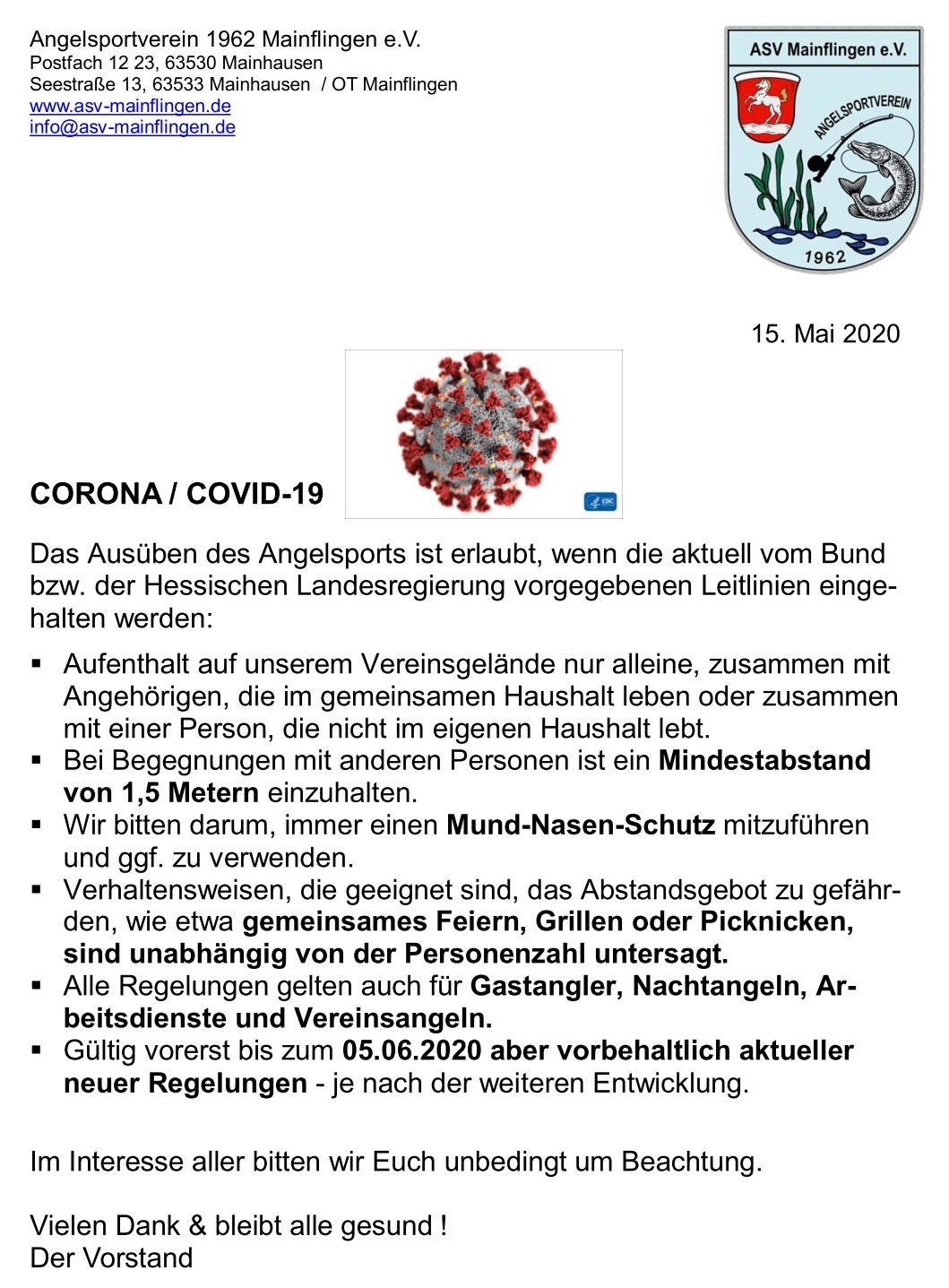 Ja, das hat uns alle „getroffen“ … die JHV am 13.03.2020 musste kurzfristig verschoben werden, zwei Arbeitsdienste und das Anangeln wurden abgesagt. Angeln war/ist zwar nicht grundsätzlich verboten aber nur unter Einhaltung der aktuellen Regelungen möglich. Und unser Backfischfest 2020 fällt leider auch aus.